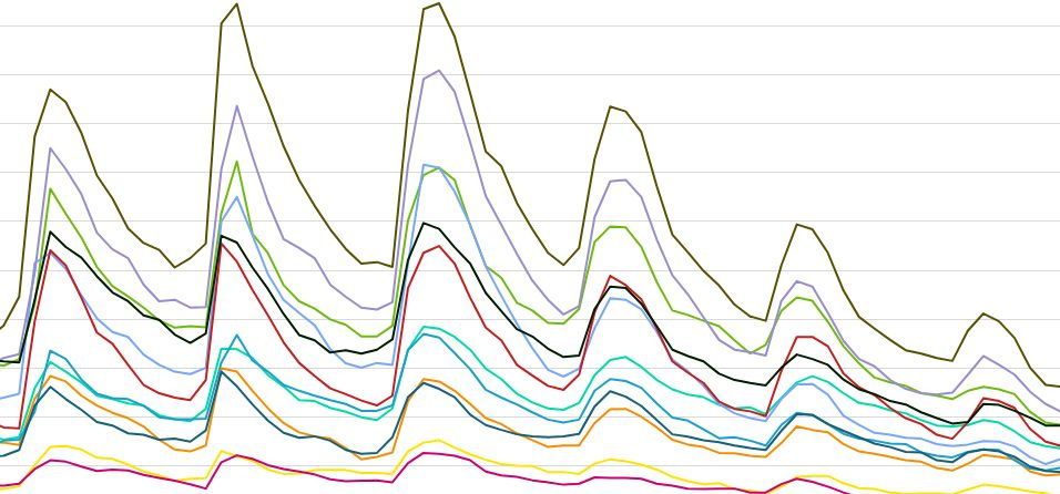 Het UWV verstrekte op verzoek van het Onderwijsblad de onderliggende cijfers over de afgelopen zeven jaar per provincie. Daarin is het aantal lopende ww-uitkeringen per maand te zien sinds 2012. Als je in de grafiek op een lijn blijft staan, licht je hem eruit: