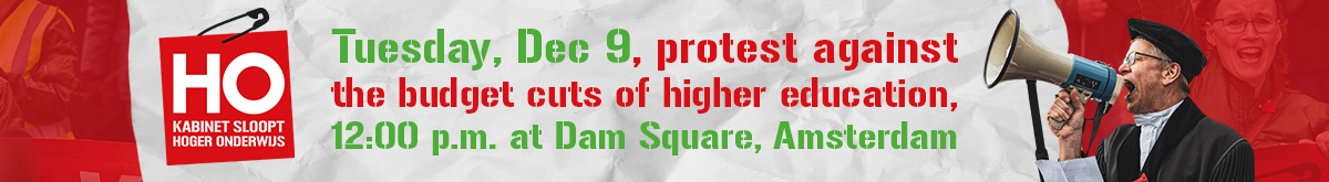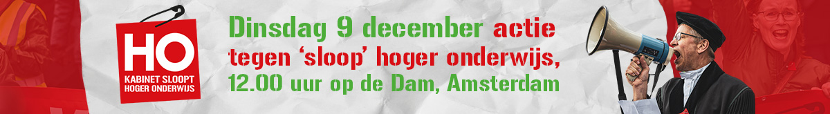 De toekomst van het hoger onderwijs ligt nu op de formatietafel. Dit is, na alle acties van het afgelopen jaar, hét moment om resultaat te boeken. We herinneren de politieke partijen aan hun belofte om niet te bezuinigen op onderwijs. Daarom voeren we op 9 december opnieuw actie. We starten om 12 uur op de Dam in Amsterdam. Stop de sloop!