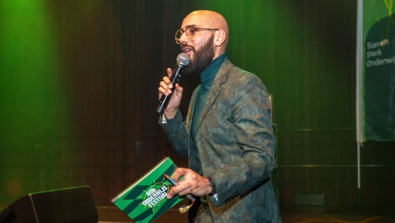 TivoliVredenburg kleurde groen op zaterdag 22 november. Na een welkomstwoord van het dagvoorzittersduo Karim Amghar en Simone Fomenko, opende AOb-voorzitter Coba van der Veer de eerste editie van het Onderwijsfestival.