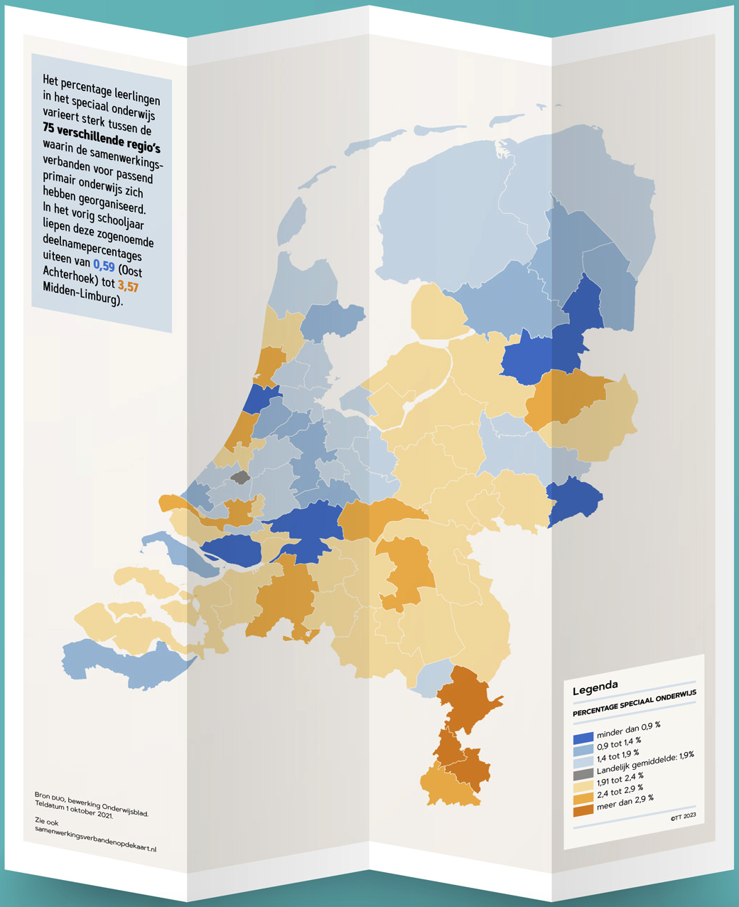 Wel bekend maar toch opvallend is dat Limburg oververtegenwoordigd is aan de bovenkant. Ook regio’s rond Kerkrade, Geleen en Maastricht hebben relatief veel leerlingen in een speciale onderwijssetting. Van oudsher kent de provincie, met haar geschiedenis van katholieke instituties, hierin een traditie. “Ook ouders zijn eraan gewend, waardoor ze veel minder een drempel voelen dan elders”, aldus Smulders. “Maar dat mag natuurlijk geen reden zijn voor die hoge verwijspercentages. We willen toe naar inclusiever onderwijs en meer leerlingen met ondersteuning een passende plek bieden op reguliere scholen.”